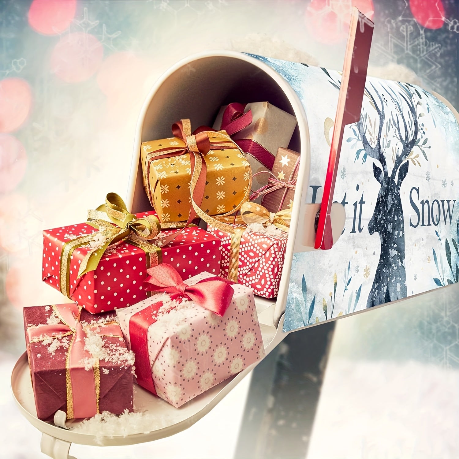 Transform your mailbox into a festive focal point with this “Let It Snow” Elk Reindeer Mailbox Cover, featuring a charming winter scene with reindeer and snowflakes. Made from durable, weather-resistant polyester, it’s easy to secure with a snap-fastening strap that keeps it in place through wind and weather.