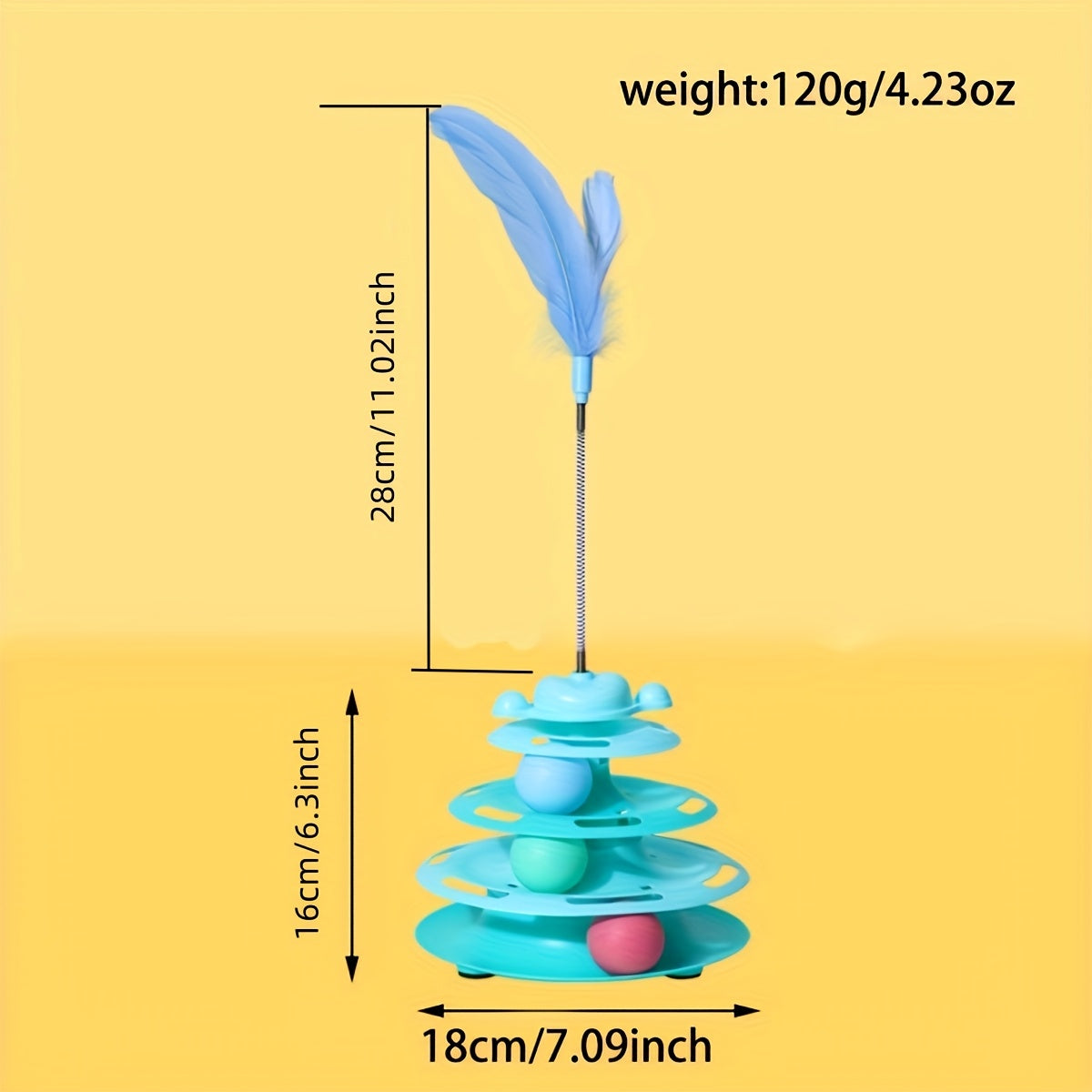 Interactive 4-Layer Cat Toy with Green Nylon Feather Teaser