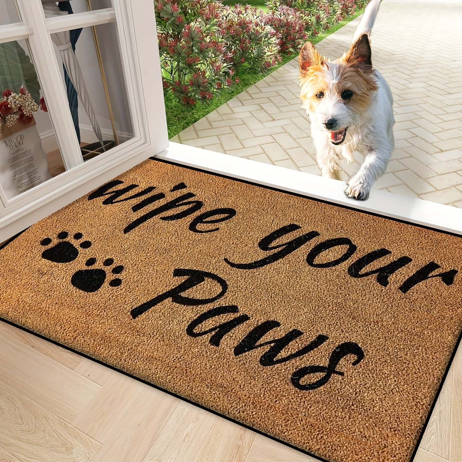 Give guests and furry friends a warm welcome with this playful “Wipe Your Paws” dog-themed mat. Designed with black paw prints on a classic brown background, it brings friendly charm to entryways, kitchens, mudrooms, and porches. The non-slip backing helps keep it in place, while the durable polyester surface is made to handle everyday traffic — from sandy paws to muddy boots.