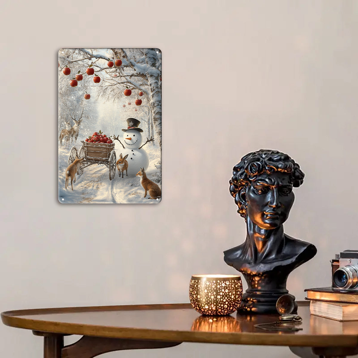 This 2D flat vertical tin plate features a charming snowman, apples, and forest animals, capturing the warmth and magic of the season. Measuring 7.9 x 11.8 inches, it’s perfect for adding a festive touch to any living room, bedroom, office, or entryway.