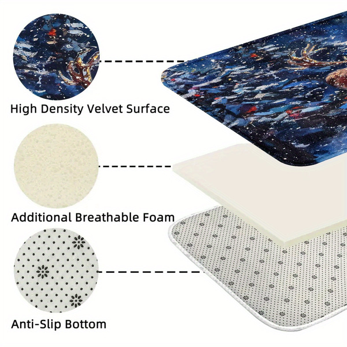 Welcome guests with a burst of festive spirit using this Holiday Cheer Door Mat, featuring a charming elk and sleigh design framed by snowy trees. Made from durable, machine-washable polyester, it’s designed to handle both indoor and outdoor use—from your front door and kitchen to your RV or bathroom. The non-slip backing keeps it securely in place, adding both comfort and safety to your space.