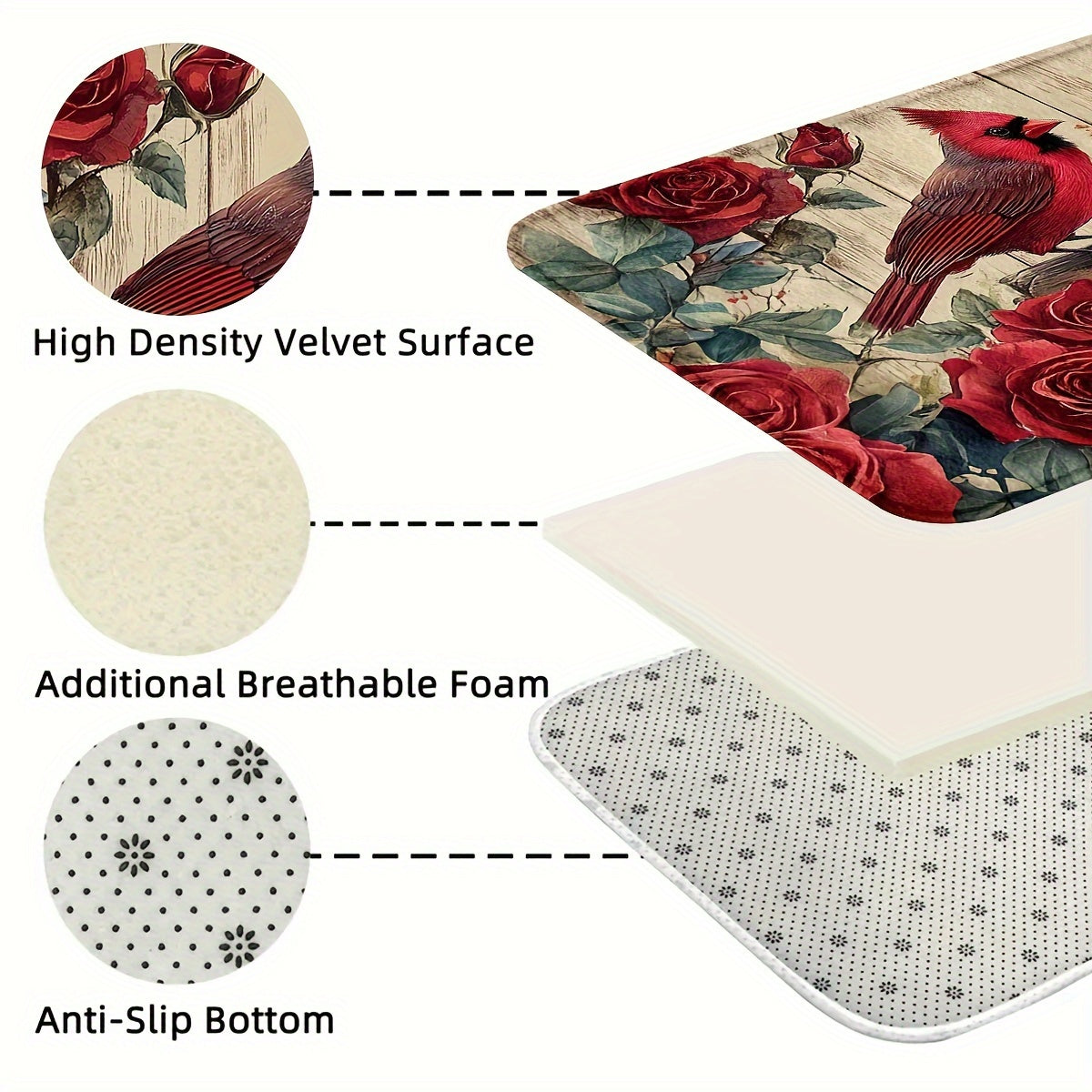 Christmas Red Cardinal & Rose Doormat, 1.5'x2.5' / 1.5'x4'