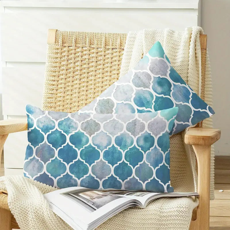 12x20 teal super soft reversible pillowcase, comfortable, colorful plaid chain decoration, handpainted moroccan for sofa, bed, farmhouse, decorative cushion cover.