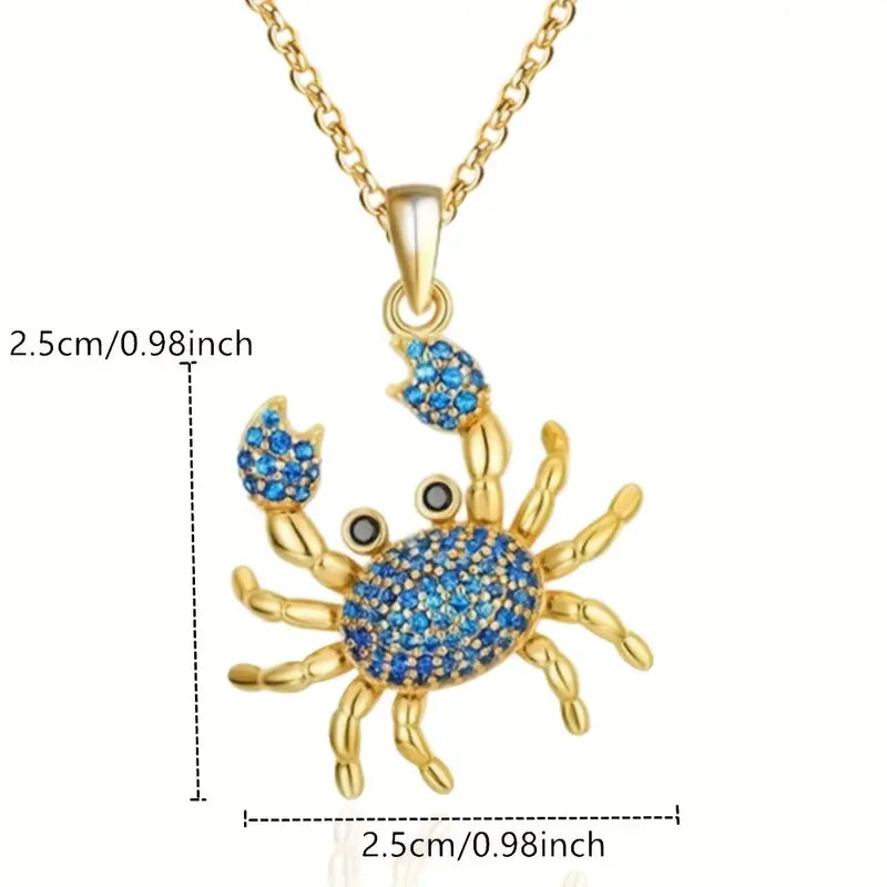 Exquisite marine animals pattern blue rhinestones embedded golden plated alloy necklace with crab.