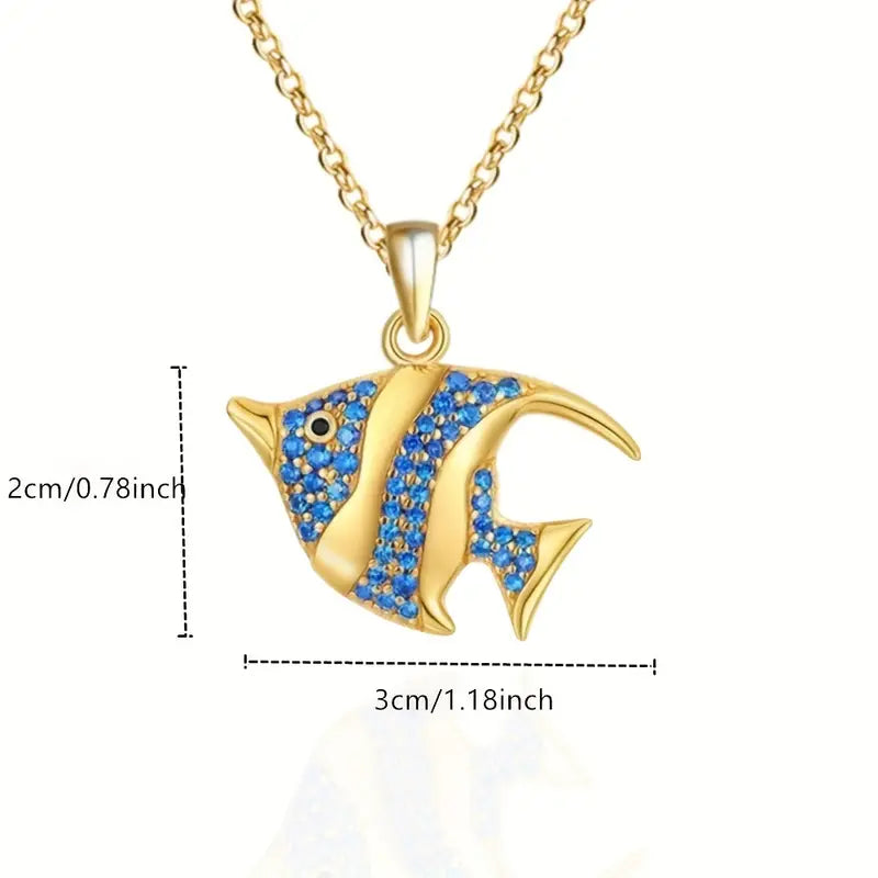 Exquisite marine animals pattern blue rhinestones embedded golden plated alloy necklace with fish.