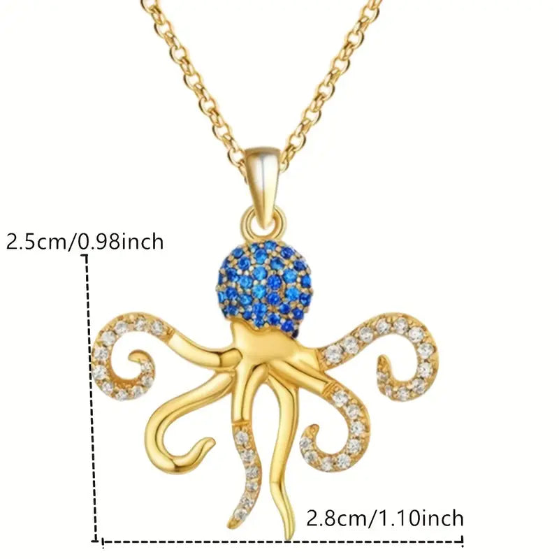 Exquisite marine animals pattern blue rhinestones embedded golden plated alloy necklace with octopus.