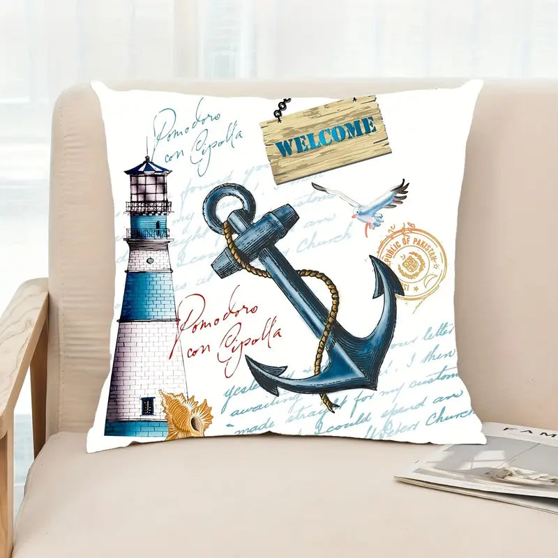Introduce a touch of coastal style to your living space with this charming decorative pillowcase featuring a lighthouse, anchor, and nautical motif! Anchor your decor to a breezy seaside vibe with this perfect piece of pillow heaven. (We even think mermaids would approve.)