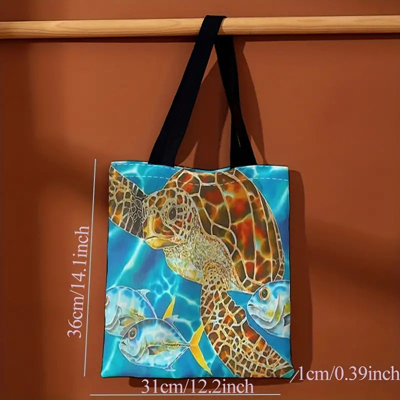 This sea-worthy tote oozes style with its slinky ocean turtle print and its handy-dandy shoulder straps for a hands-free experience. Make waves that don't pollute with this reusable, multipurpose bag!
