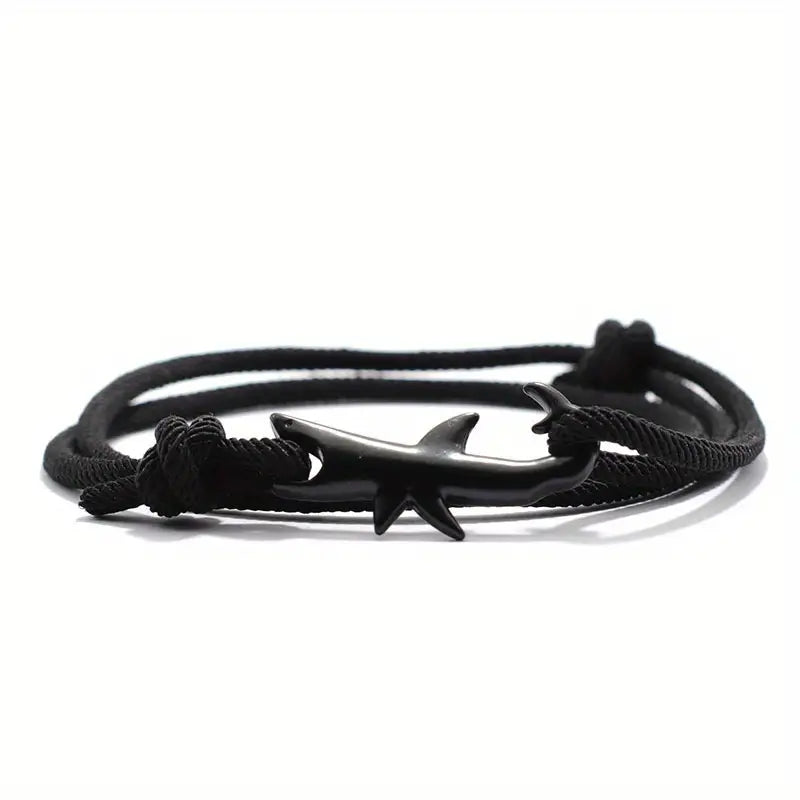 Black trendy shark bracelet for men, men's double layer adjustable rope bracelet, camping jewelry accessories.