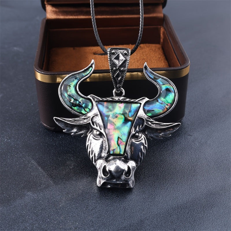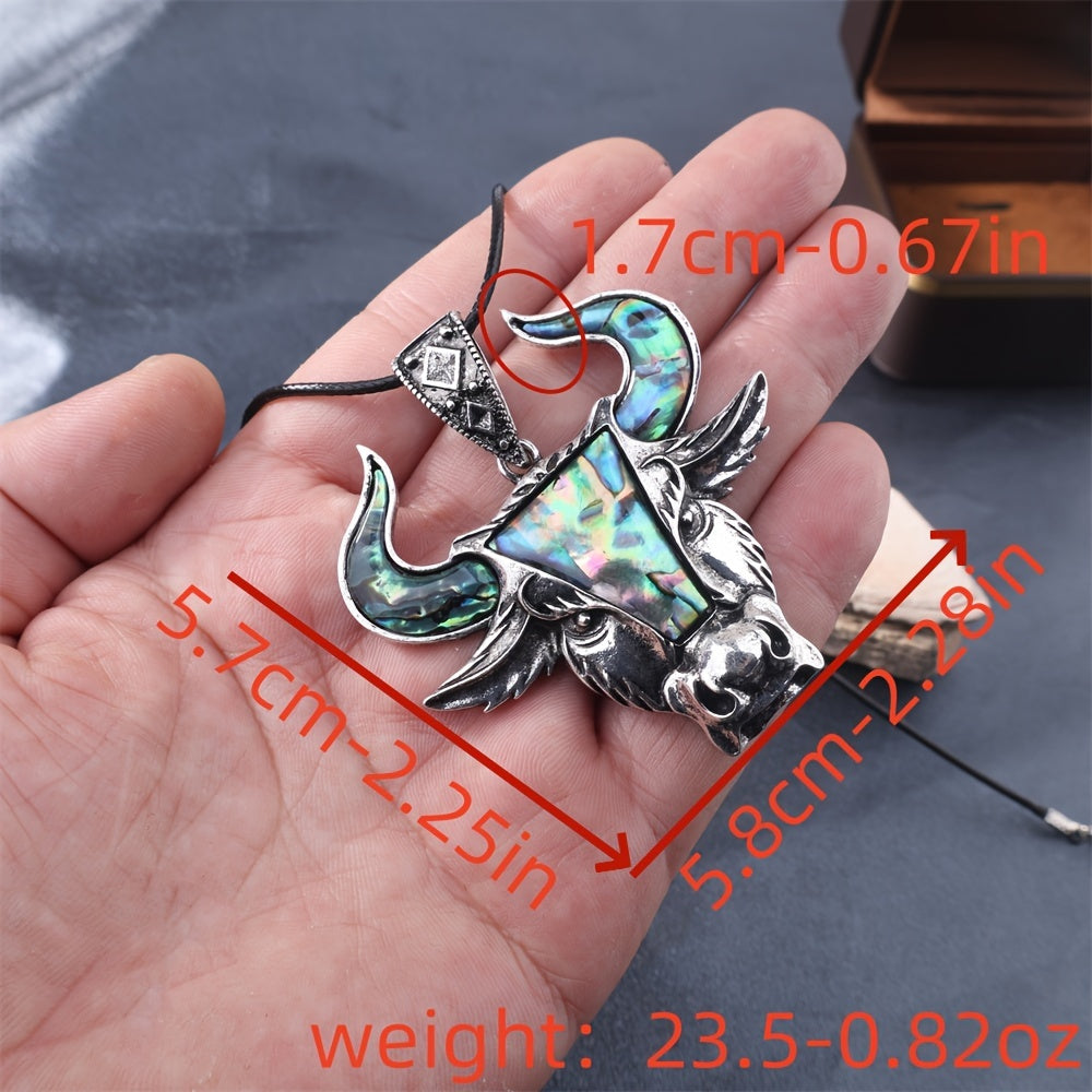 Elegant Blue Abalone Shell Pendant Necklace with Natural Stone, Handcrafted Faux Leather Cord
