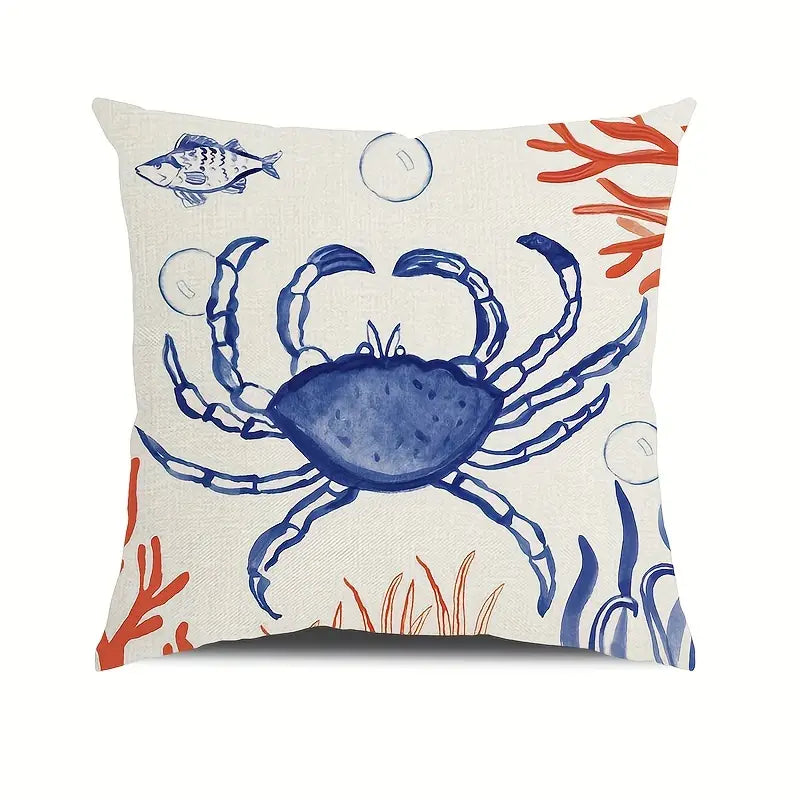 Linen new hand-painted crab retro marine life pillowcases. Home decoration cushion cover, home decor, room decor, bedroom decor, living room decor.