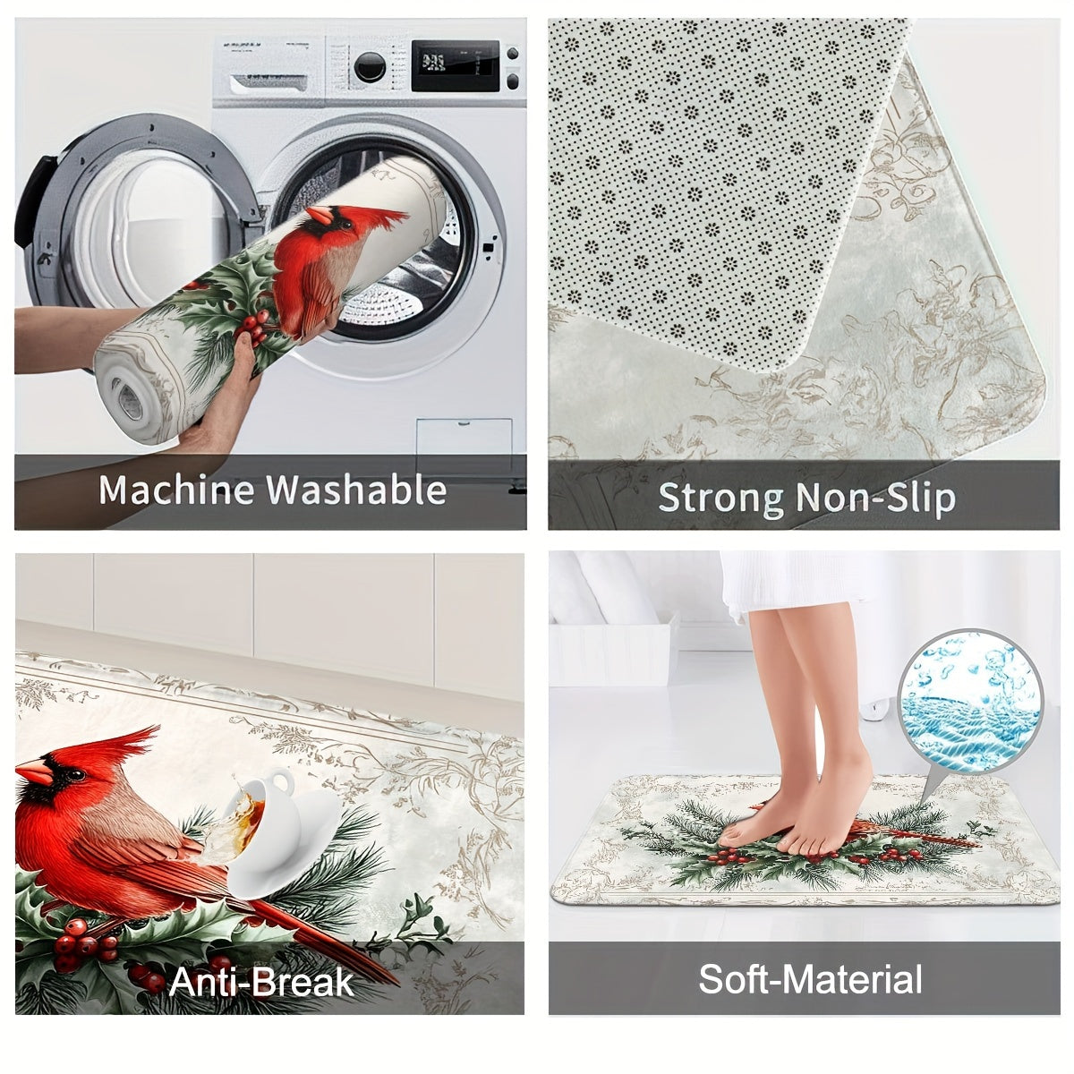 Holiday Cardinal & Pine Branch Doormat – Non-Slip, Machine Washable, 1.5'x2.5' / 1.5'x4'