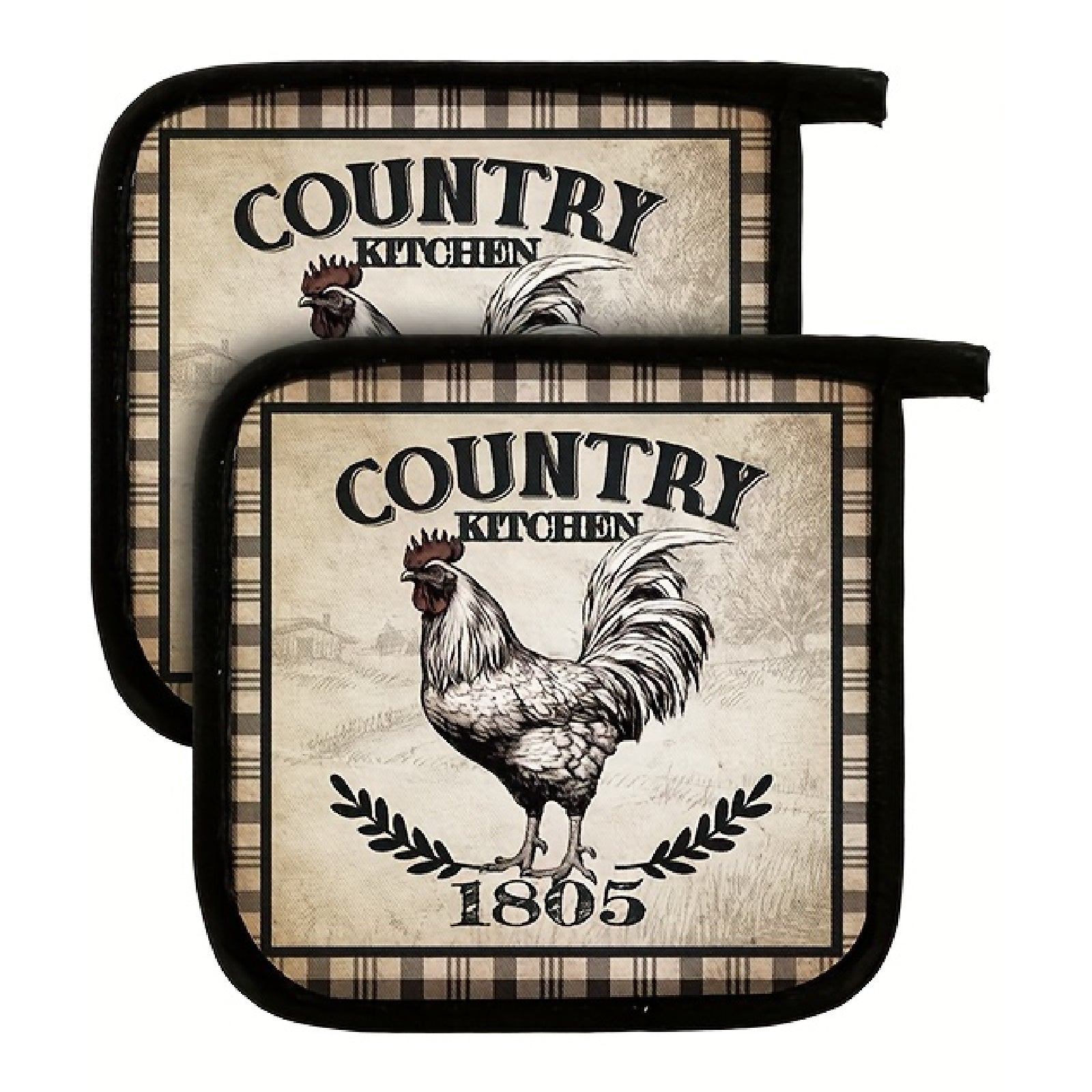 6 Sets of Vintage Rustic Pot Holders with Pockets – Heat-Resistant Kitchen Accessories