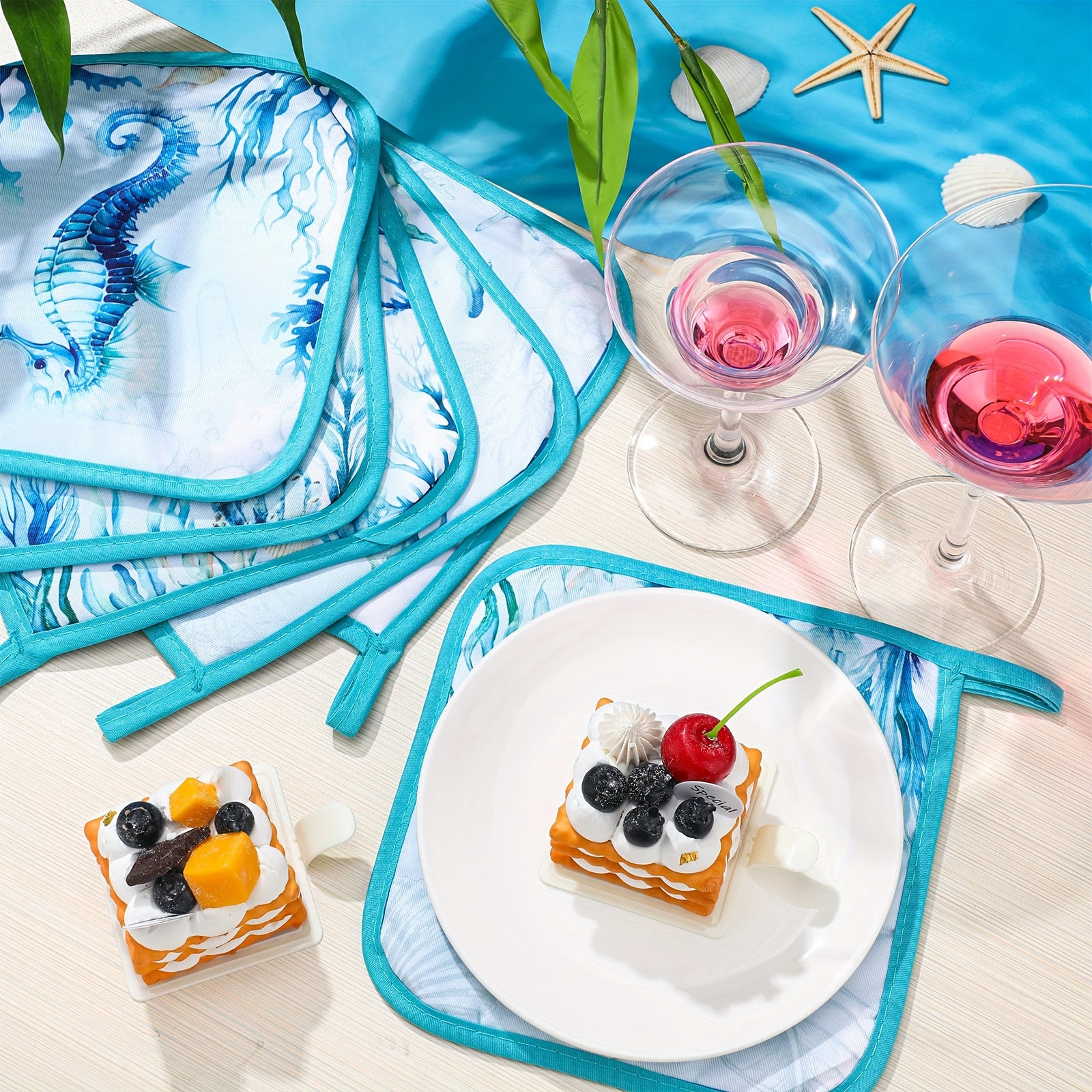 Crafted with durable, heat-resistant fabric, these pot holders are ideal for baking, cooking, or grilling, while the charming marine motifs make them a delightful Christmas or hostess gift. Add a splash of ocean-inspired style to your daily kitchen routine.