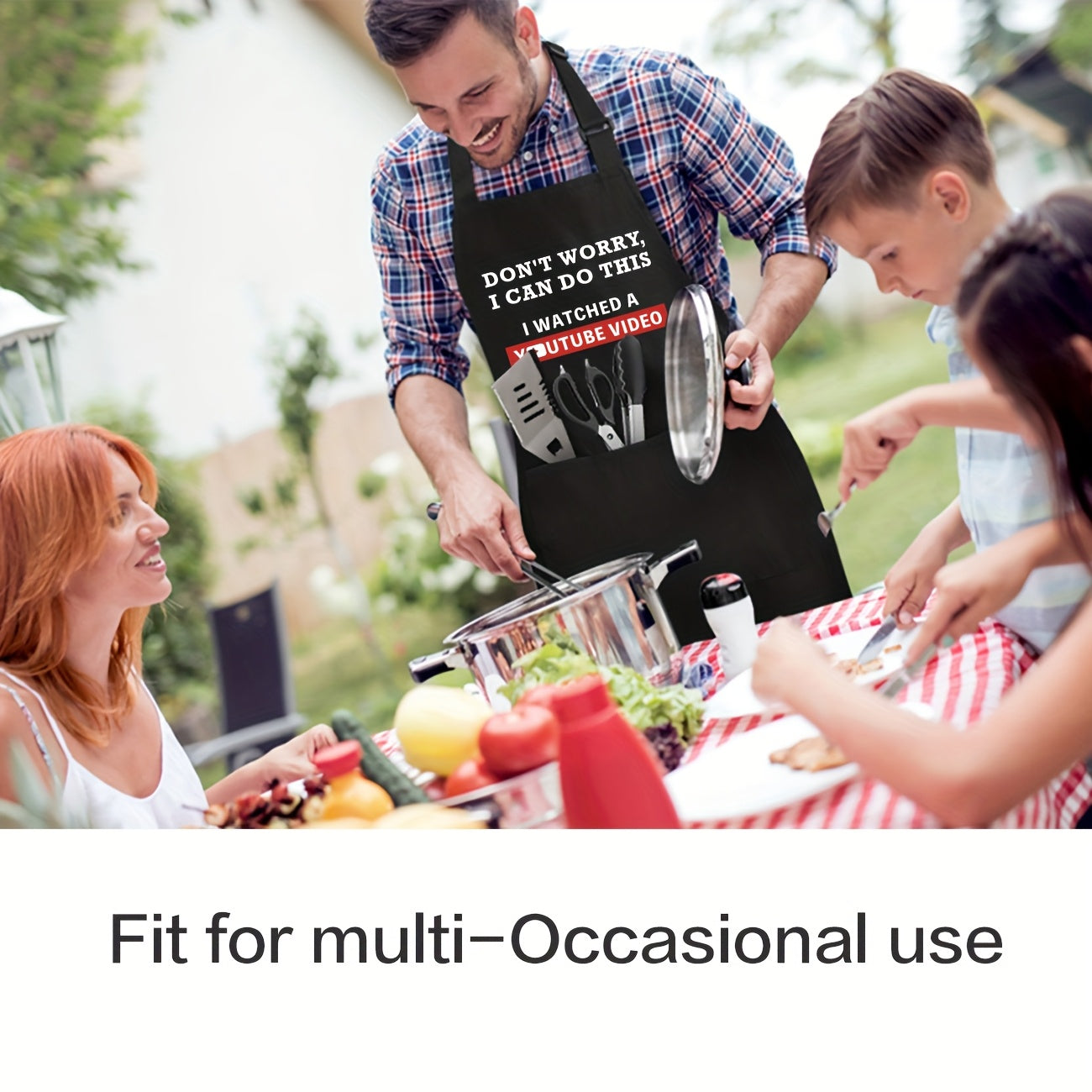 "Don't Worry, I can do this..." Black Apron – Adjustable Unisex Cooking & BBQ Apron with Pockets (25.6" x 30")